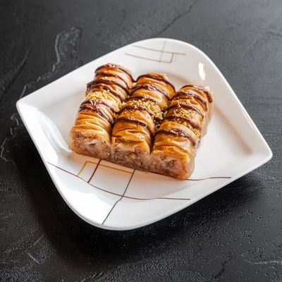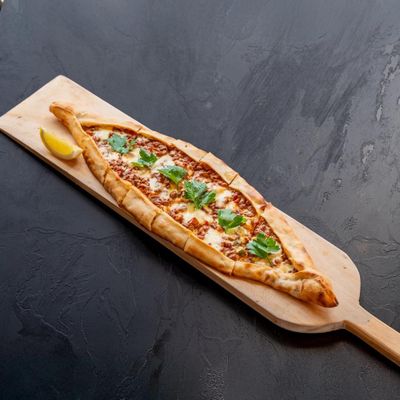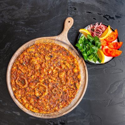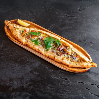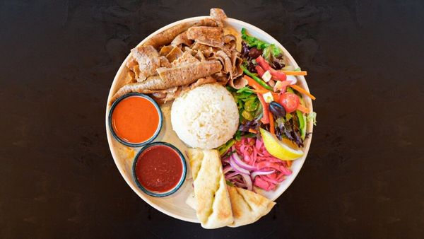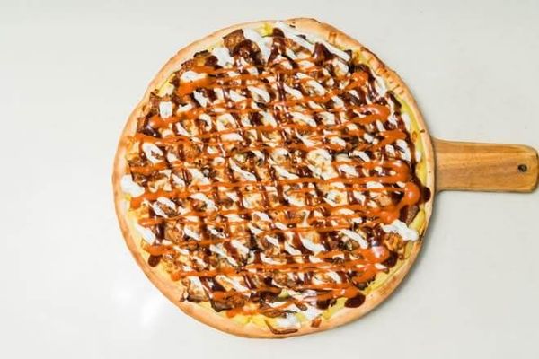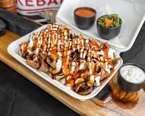 Tomato base topped with kebab meat, crispy chips, and a blend of garlic sauce, BBQ sauce, and hot chili sauce