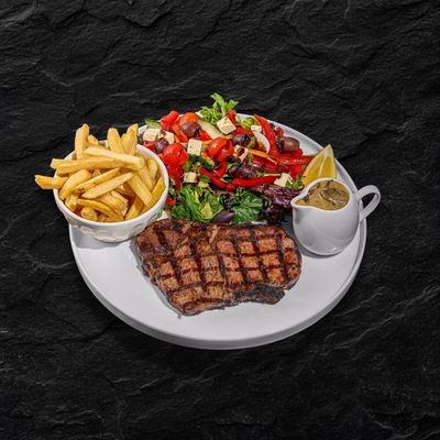 (280-300 gm) Rib fillet steak chargrilled to your liking. Served with fresh garden salad and golden fries as well as creamy mushroom
