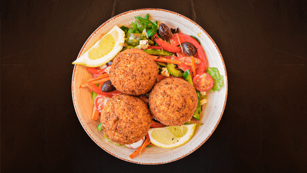 Marinated Diced Lamb, Capsicum, Parsley, Tomato, Feta & Mozzarella Cheese