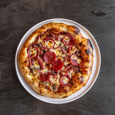 BBQ base topped with Macon, pepperoni, and beef mince.