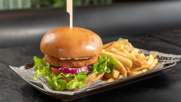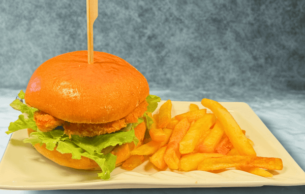 Chicken breast schnitzel, lettuce, tomato, onion, Jalapeño with spicy mayo