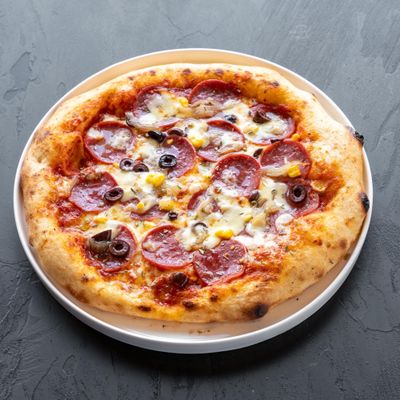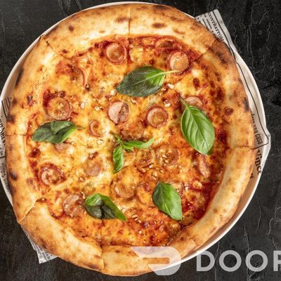 Pepperoni, caramelized onion, corn, olives, basil leaves, drizzled with truffle oil and oregano