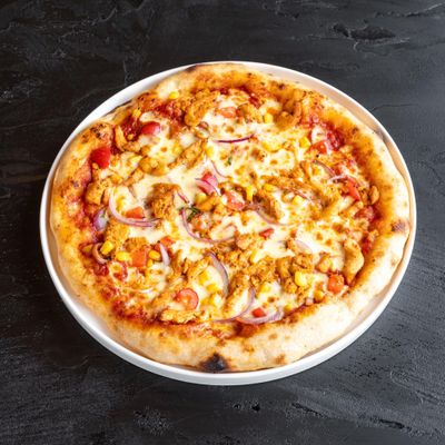 Tandoori Chicken, Paneer Cubes, Green Chilli, Red Onions, Garlic Sauce & Chilli Flakes