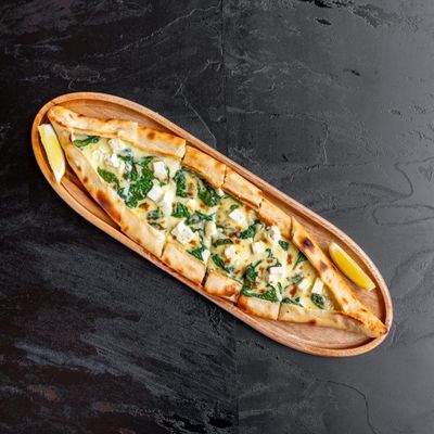 Chargrilled Diced lamb, feta, Kalamata olives, onion ,spinach, mozzarella cheese, Garlic yoghurt dressing